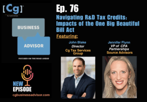 In a recent episode of the Cg Business Advisor Podcast, tax director John Blake, CPA, MBA, and R&D tax credit specialist Jennifer Flynn from Source Advisors broke down the important changes to Research and Development tax credits—and why businesses of all sizes should pay attention.